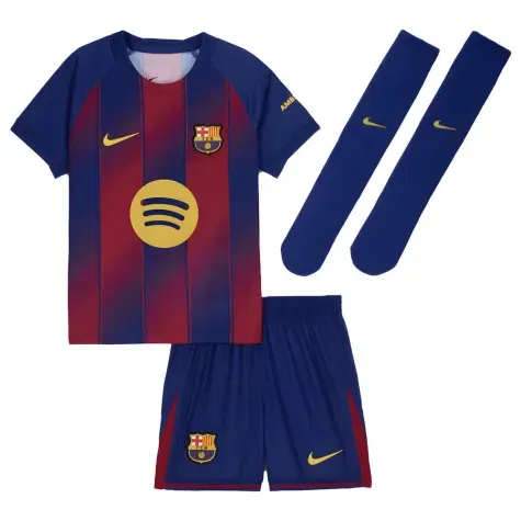 Dress your little champion in the iconic colours of FC Barcelona with this official 2025-2026 home mini kit from Nike. Featuring the club's legendary blaugrana stripes, this miniature replica captures all the pride and passion of Camp Nou in a size perfect for young supporters.