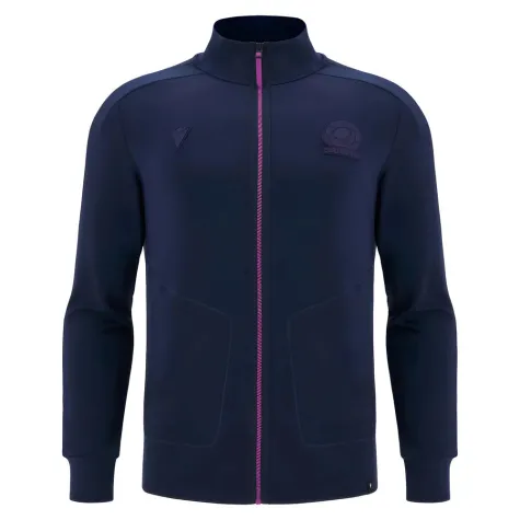 Premium Construction - Navy full zip anthem jacket with textured sleeves, seagreen zips and white embroidered Scotland Rugby crest. The sophisticated navy colourway is complemented by distinctive textured sleeve detailing and striking seagreen zip accents.