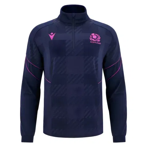 Keep your young Scotland supporter warm and comfortable with this premium junior travel quarter zip fleece in classic navy. Perfect for match days, training sessions, or everyday wear, this versatile fleece combines style with practical functionality.