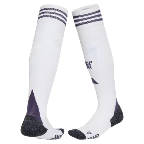 Complete your Red Devils away kit with these official Manchester United 2025-26 away socks from Adidas. Designed to complement the stunning new away strip, these crisp white socks deliver the perfect finishing touch to your matchday look.