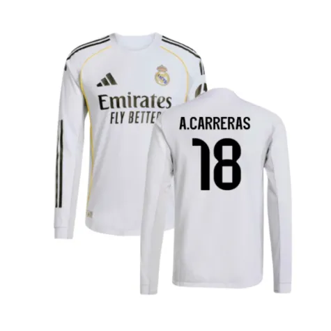 2025-2026 Real Madrid Authentic Long Sleeve Home Shirt (A.Carreras 18)