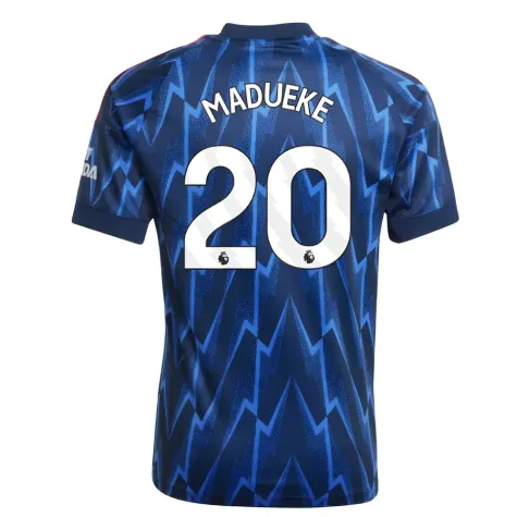 Official Noni Madueke football shirt. This is the NEW 2025-2026 Arsenal Away Shirt (Kids) which is manufactured by Adidas and is available in all Kid sizes.