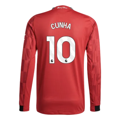 2025-2026 Man Utd Authentic Long Sleeve Home Shirt (Cunha 10)
