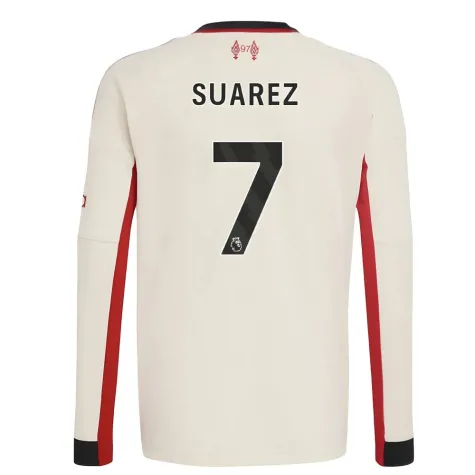 Official Luis Suarez football shirt. This is the NEW Liverpool Away Long Sleeve Shirt (Kids) for the 2025-2026 season which is manufactured by Adidas and is available in all Childrens sizes.