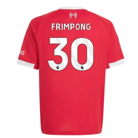 Official Jeremie Frimpong football shirt. This is the NEW Liverpool Home Shirt (Kids) for the 2025-2026 season which is manufactured by Adidas and is available in all Childrens sizes.