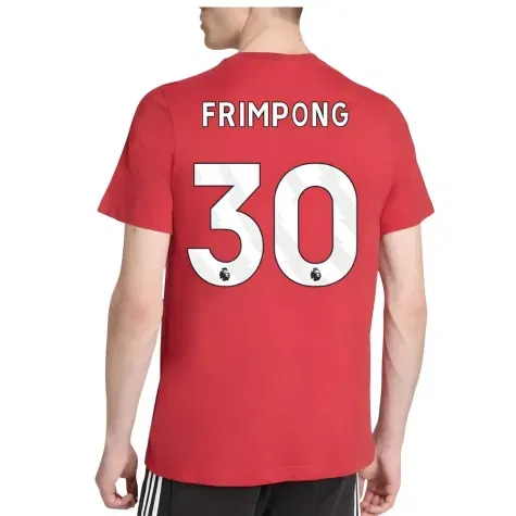 Official Jeremie Frimpong football shirt. This is the NEW Liverpool DNA Tee (Red) for the 2025-2026 season which is manufactured by Adidas and is available in all Adult sizes.