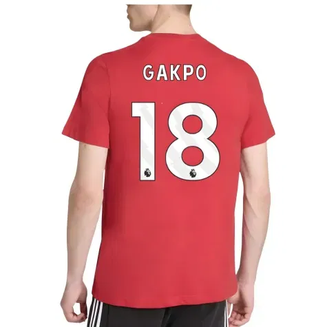 Official Cody Gakpo football shirt. This is the NEW Liverpool DNA Tee (Red) for the 2025-2026 season which is manufactured by Adidas and is available in all Adult sizes.