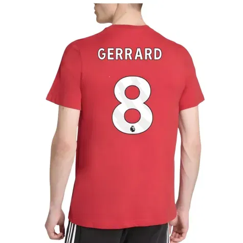 Official Steven Gerrard football shirt. This is the NEW Liverpool DNA Tee (Red) for the 2025-2026 season which is manufactured by Adidas and is available in all Adult sizes.