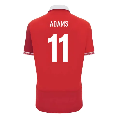 Official Josh Adams football shirt. This is the NEW Wales WRU Home Cotton Rugby Shirt for the 2025-2026 season which is manufactured by Macron and is available in all Adult sizes.