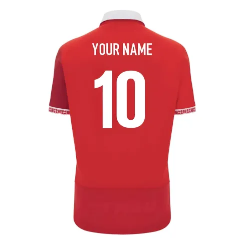 Official Your Name football shirt. This is the NEW Wales WRU Home Cotton Rugby Shirt for the 2025-2026 season which is manufactured by Macron and is available in all Adult sizes.