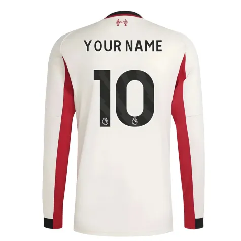 Official Your Name football shirt. This is the NEW Liverpool Long Sleeve Away Shirt for the 2025-2026 season which is manufactured by Adidas and is available in all Adult sizes.