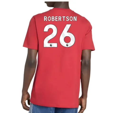Official Andrew Robertson football shirt. This is the NEW Liverpool DNA Graphic Tee (Red) for the 2025-2026 season which is manufactured by Adidas and is available in all Adult sizes.