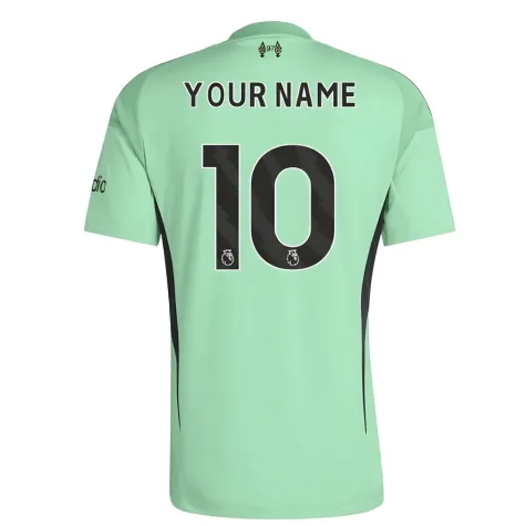 Official Your Name football shirt. This is the NEW Liverpool Home Goalkeeper Shirt (Glory Mint) - Kids for the 2025-2026 season which is manufactured by Adidas and is available in all Childrens sizes.