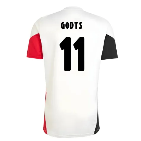 Official Mika Godts football shirt. This is the NEW Ajax Training Shirt (White) for the 2025-2026 season which is manufactured by Adidas and is available in all Adult sizes.