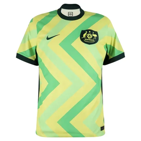 The classic home colours feature contemporary design elements that celebrate Australia's rich footballing heritage. The jersey showcases the iconic Australian Football Association crest proudly positioned on the chest, alongside the distinctive Nike Swoosh.