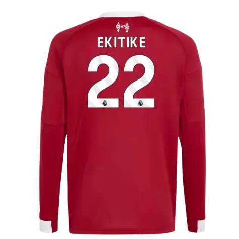 Official Hugo Ekitike football shirt. This is the NEW Liverpool Long Sleeve Home Shirt (Kids) for the 2025-2026 season which is manufactured by Adidas and is available in all Childrens sizes.