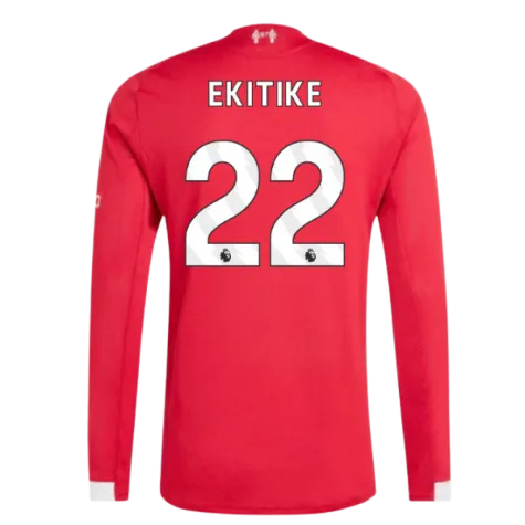 Official Hugo Ekitike football shirt. This is the NEW Liverpool Authentic Long Sleeve Home Shirt for the 2025-2026 season which is manufactured by Adidas and is available in all Adult sizes.