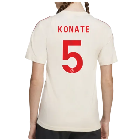 Official Ibrahima Konate football shirt. This is the NEW Liverpool Training Tee (White) - Kids for the 2025-2026 season which is manufactured by Adidas and is available in all Childrens sizes.