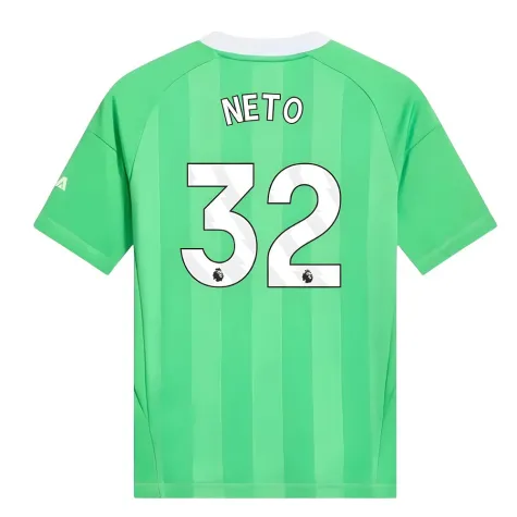 Official Neto football shirt. This is the NEW Arsenal Third Goalkeeper Shirt (Green) - Kids for the 2025-2026 season which is manufactured by Adidas and is available in all Childrens sizes.