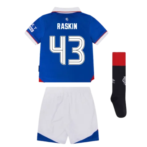 Official Nicolas Raskin football shirt. This is the NEW Rangers Home Infant Kit for the 2025-2026 season which is manufactured by Umbro and is available in all Childrens sizes.