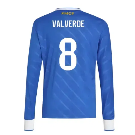 Official Federico Valverde football shirt. This is the NEW Real Madrid Long Sleeve Third Shirt (Kids) for the 2025-2026 season which is manufactured by Adidas and is available in all Childrens sizes.
