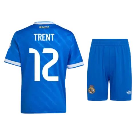 Official Trent Alexander Arnold football shirt. This is the NEW Real Madrid Third Mini Kit for the 2025-2026 season which is manufactured by Adidas and is available in all Childrens sizes.