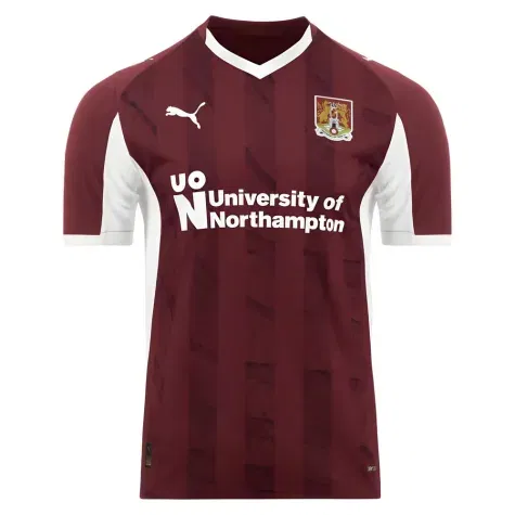 Show your unwavering support for the Cobblers with the official Northampton Town FC 2025/26 home shirt by Puma. This premium football shirt embodies the club's proud heritage and tradition, featuring the iconic claret and white colours that have been synonymous with Sixfields Stadium for generations.