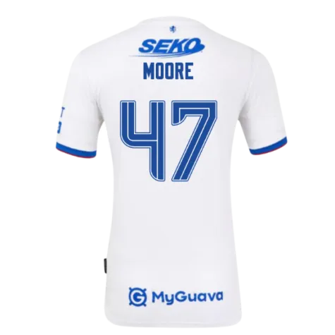 Official Mikey Moore football shirt. This is the NEW Rangers Away Shirt for the 2025-2026 season which is manufactured by Umbro and is available in all Adult sizes.