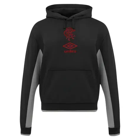 Stay warm, comfortable, and effortlessly stylish with the official Rangers 20252026 Umbro Travel Hoodie in Caviar. Designed for travelling supporters and off-pitch wear, this premium hoodie combines practicality with the unmistakable pride of Rangers FC.