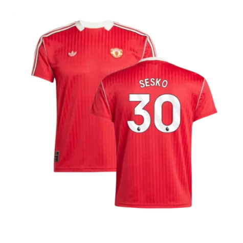 Official Benjamin Sesko football shirt. This is the NEW Manchester United Terrace Icons Shirt (Red) for the 2025-2026 season which is manufactured by Adidas and is available in all Adult sizes.