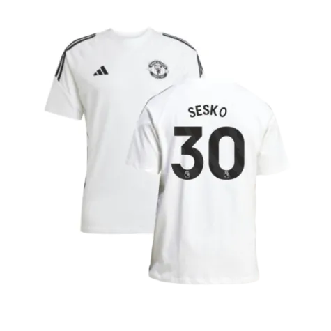 Official Benjamin Sesko football shirt. This is the NEW Man Utd Training Tee (White) for the 2025-2026 season which is manufactured by Adidas and is available in all Adult sizes.