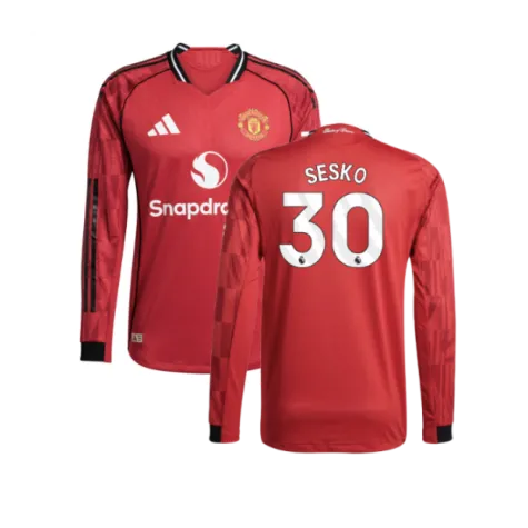 2025-2026 Man Utd Authentic Long Sleeve Home Shirt (Sesko 30)