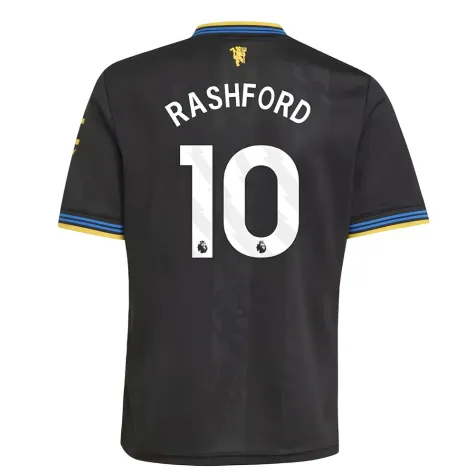 Official Marcus Rashford football shirt. This is the NEW Man Utd Third Shirt (Kids) for the 2025-2026 season which is manufactured by Adidas and is available in all Childrens sizes.