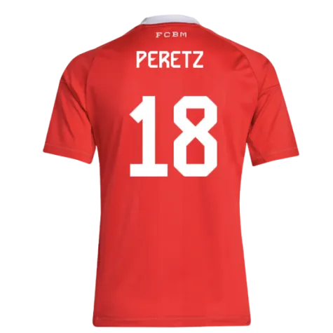 Official Daniel Peretz football shirt. This is the NEW Bayern Munich Third Goalkeeper Shirt (Pure Ruby) - Kids for the 2025-2026 season which is manufactured by Adidas and is available in all Childrens sizes.