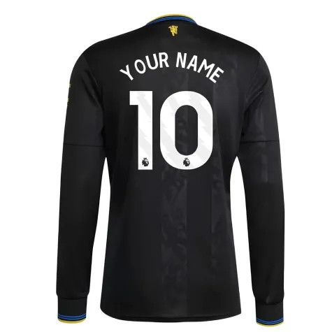 Official Your Name football shirt. This is the NEW Man Utd Long Sleeve Third Shirt for the 2025-2026 season which is manufactured by Adidas and is available in all Adult sizes.