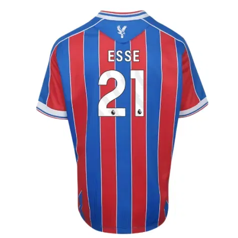 Official Romain Esse football shirt. This is the NEW Crystal Palace Home Shirt (Kids) for the 2025-2026 season which is manufactured by Macron and is available in all Childrens sizes.
