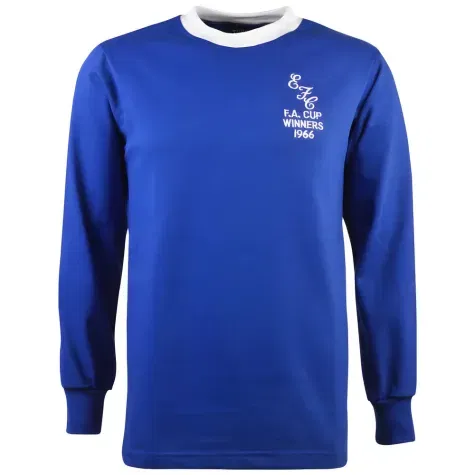 Everton 1966 FA Cup Final Retro Football Shirt. Everton played Sheffield Wednesday in the 1966 FA Cup Final and Derek Temple notched the winner in a 3-2 win.