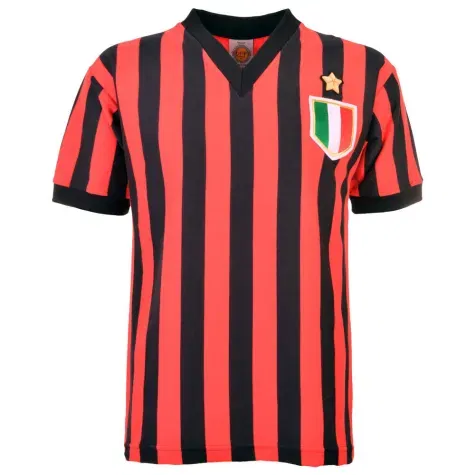 A C Milan 1979-1980 Childrens Retro Football ShirtAC Milan won the league in 78-79 and so this shirt, worn in 79-80 carried the first ever star - showing that they had won 10 league titles.NB: Depending on the size of the shirt the badge/embroidery may appear on an alternative stripe than pictured.