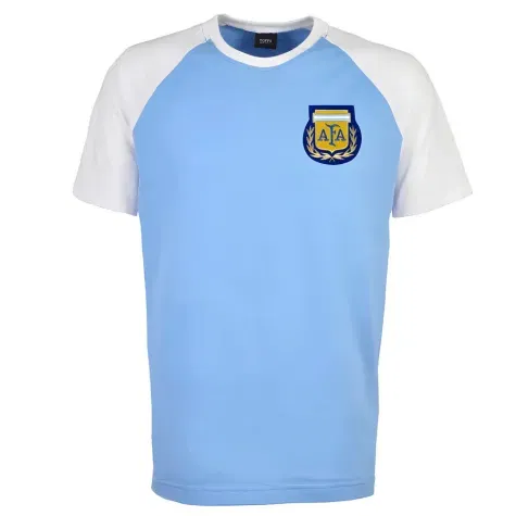 Kids Argentina Raglan Sleeve Sky/White T-Shirt Get your kids ready for the 2018 World Cup with our new raglan style Argentina T-Shirt! Whether its their first world cup or their 3rd, our raglan t-shirts are suitable for all ages from 12 months up to 13 years and perfect for a kick around in the garden.The short sleeved shirt has the club badge from both the 1982 and 1986 World Cups sewn onto the left chest.