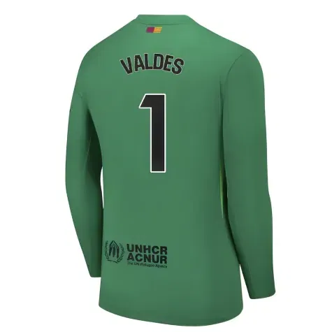 Official Victor Valdes football shirt. This is the NEW Barcelona Home Goalkeeper Shirt (Green) for the 2025-2026 season which is manufactured by Nike and is available in all Adult sizes.
