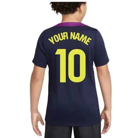 Official Your Name football shirt. This is the NEW Barcelona Strike Training Shirt (Purple) - Kids for the 2025-2026 season which is manufactured by Nike and is available in all Childrens sizes.