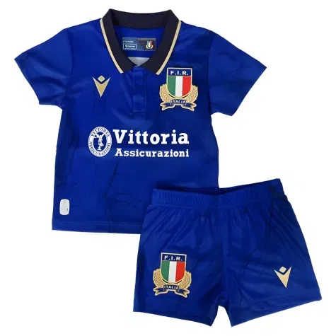 Show your passion for Gli Azzurri with this official Italy Rugby home kit for young supporters. This complete kit includes both the iconic blue jersey and matching shorts, perfect for budding rugby enthusiasts.