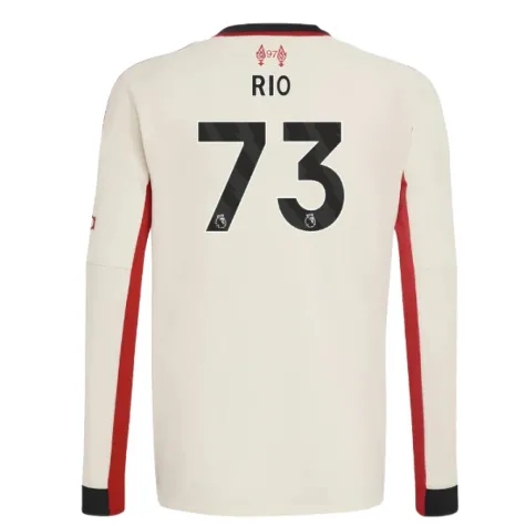 Official Rio Ngumoha football shirt. This is the NEW Liverpool Away Long Sleeve Shirt (Kids) for the 2025-2026 season which is manufactured by Adidas and is available in all Childrens sizes.