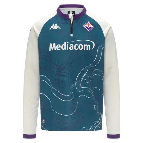 Prepare for match day in style with this official Fiorentina pre-match sweat top from Kappa's 2025/26 collection. Crafted in a striking turquoise colourway, this premium training garment perfectly captures the spirit of La Viola whilst delivering the performance you need.