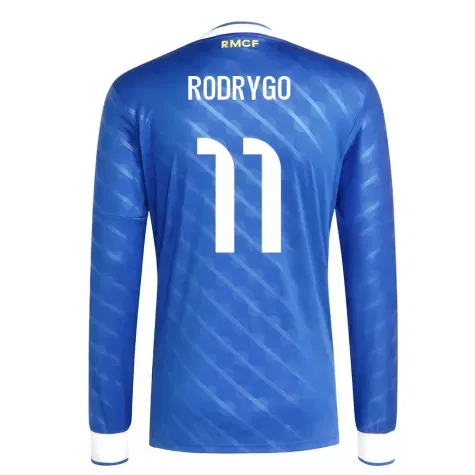 Official Rodrygo football shirt. This is the NEW Real Madrid Long Sleeve Third Shirt for the 2025-2026 season which is manufactured by Adidas and is available in all Adult sizes.