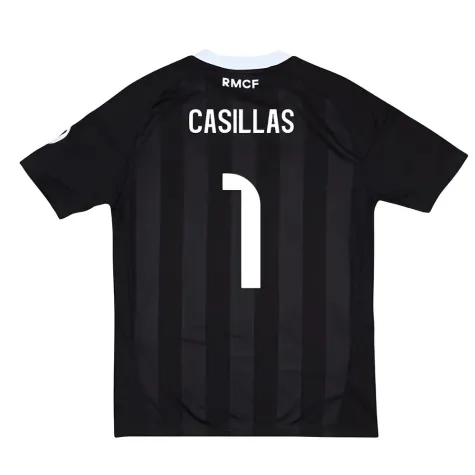 Official Iker Casillas football shirt. This is the NEW Real Madrid Third Goalkeeper Youth Kit (Black) for the 2025-2026 season which is manufactured by Adidas and is available in all Childrens sizes.