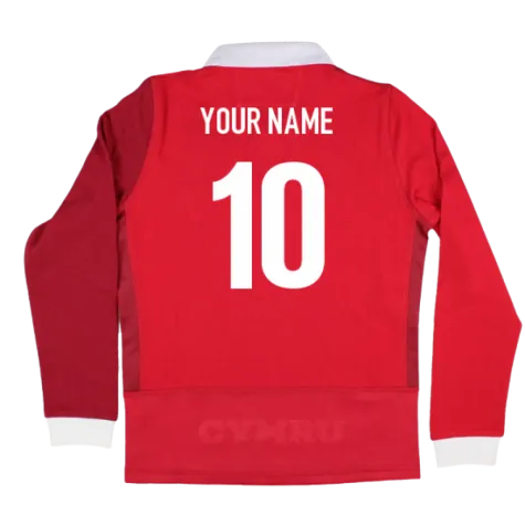2025-2026 Wales WRU Home LS Cotton Rugby Shirt (Kids) (Your Name)