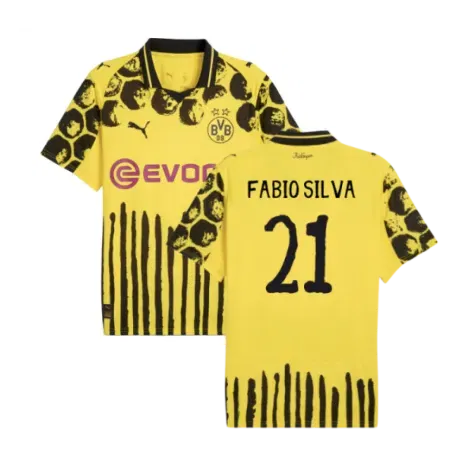 Official Fabio Silva football shirt. This is the NEW KIDSUPER x Borussia Dortmund CWC Home Shirt for the 2025-2026 season which is manufactured by Puma and is available in all Adult sizes.