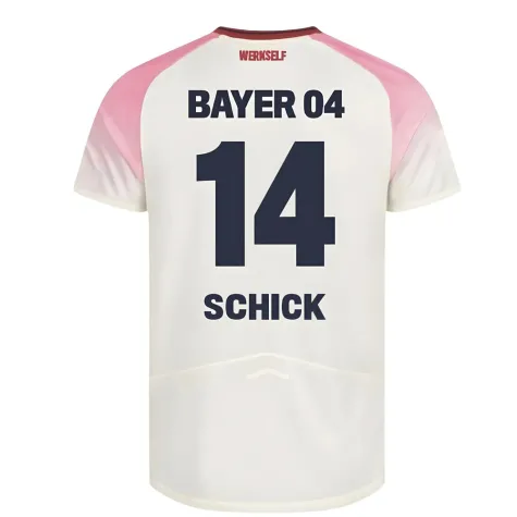 Official Patrik Schick football shirt. This is the NEW Bayer Leverkusen Away Shirt (Kids) for the 2025-2026 season which is manufactured by New Balance and is available in all Childrens sizes.
