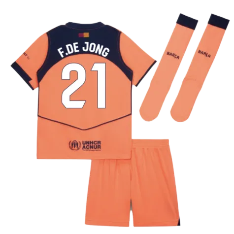 Official Frenkie De Jong football shirt. This is the NEW Barcelona Third Mini Kit for the 2025-2026 season which is manufactured by Nike and is available in all Childrens sizes.